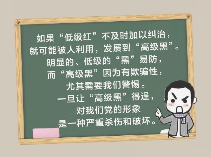總的來說,無論是“低級紅”還是“高級黑”,無論是主觀故意,還是客觀無知,都會給黨的事業(yè)帶來損害。